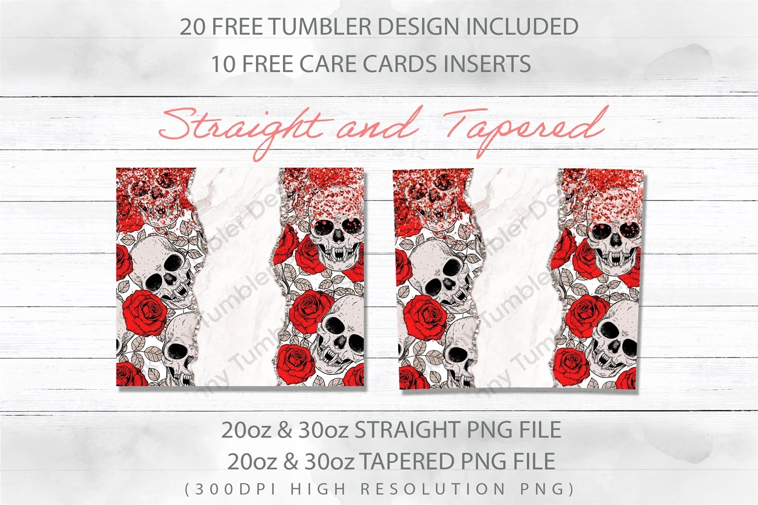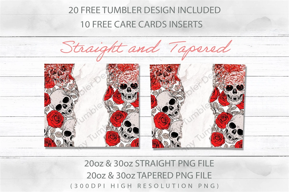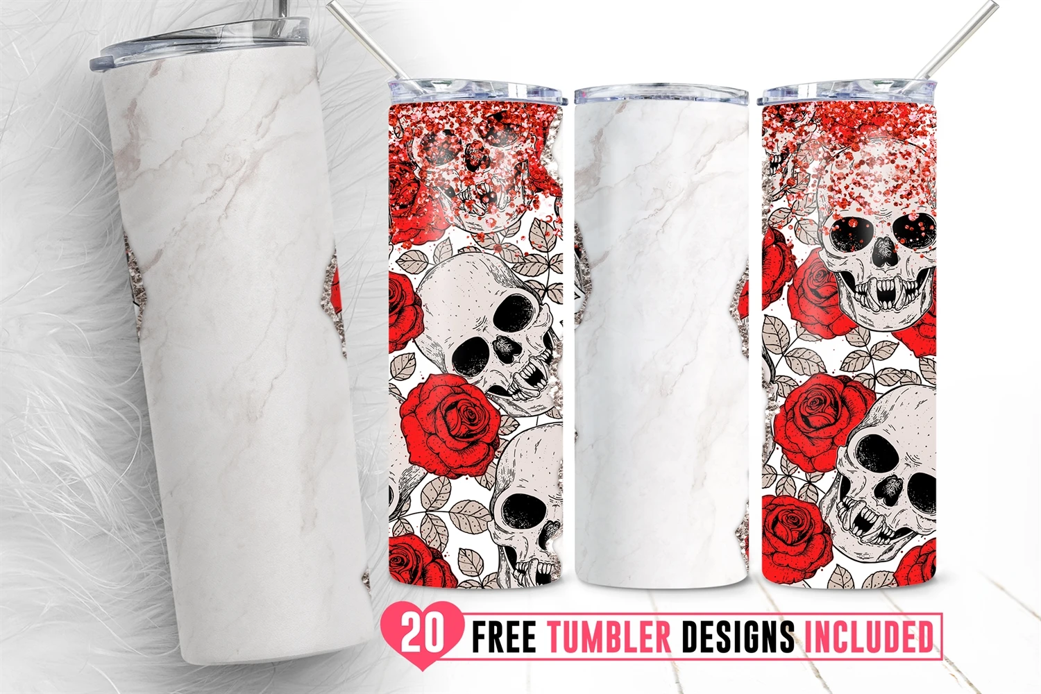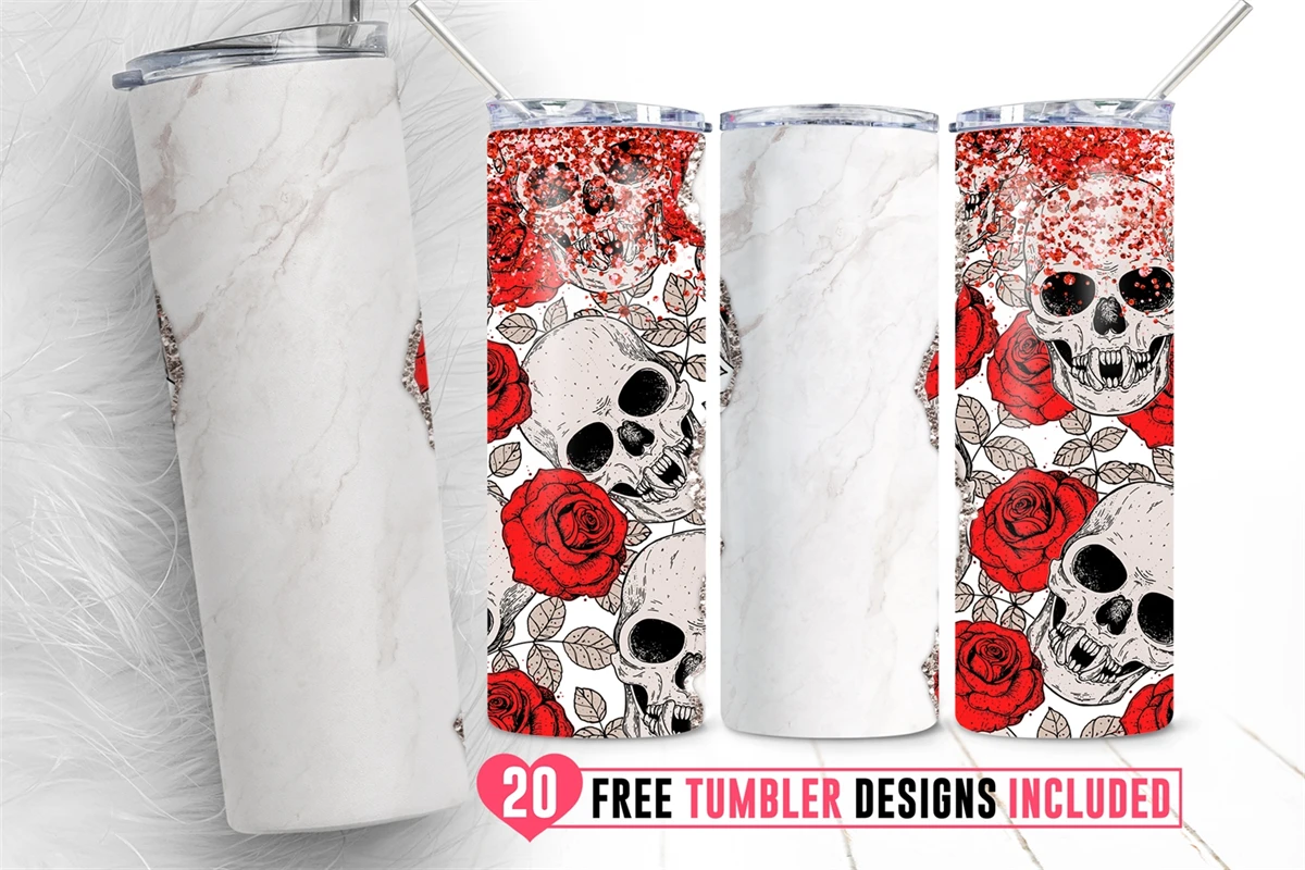 20oz Halloween Skinny Tumbler Sublimation Png, Flower, Skull