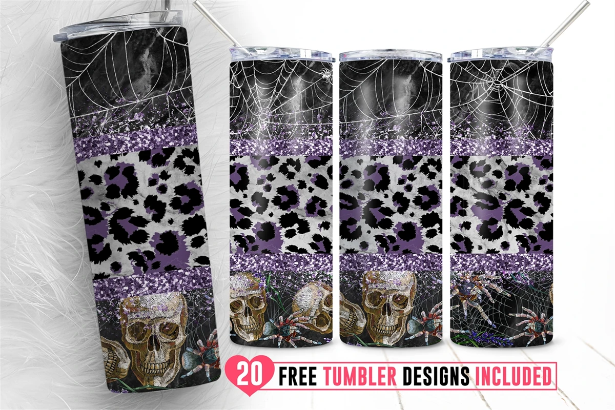 20oz Halloween Skinny Tumbler Sublimation Png, Spider, Bat