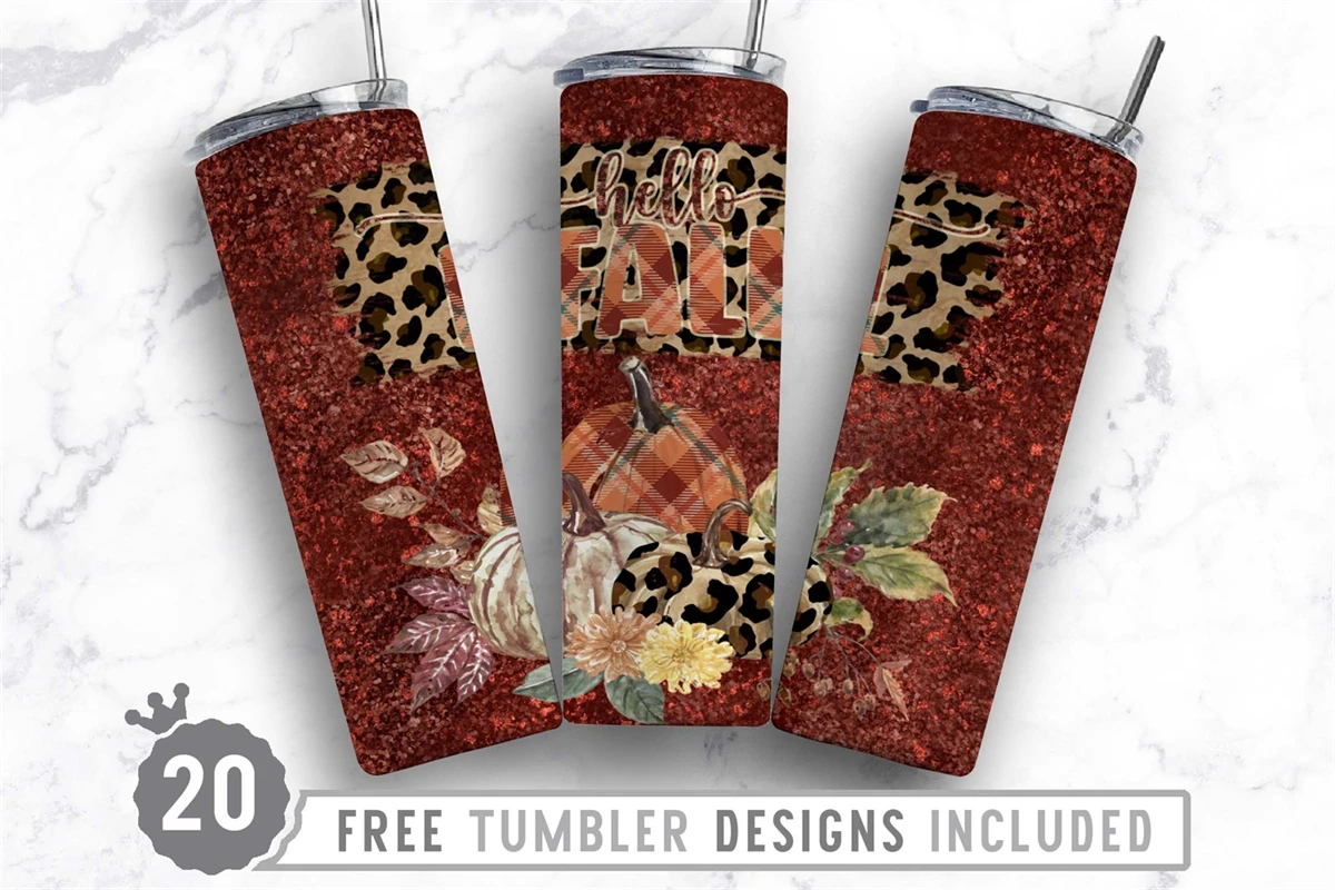 20oz Happy Fall Skinny Tumbler Sublimation, Straight Tapered