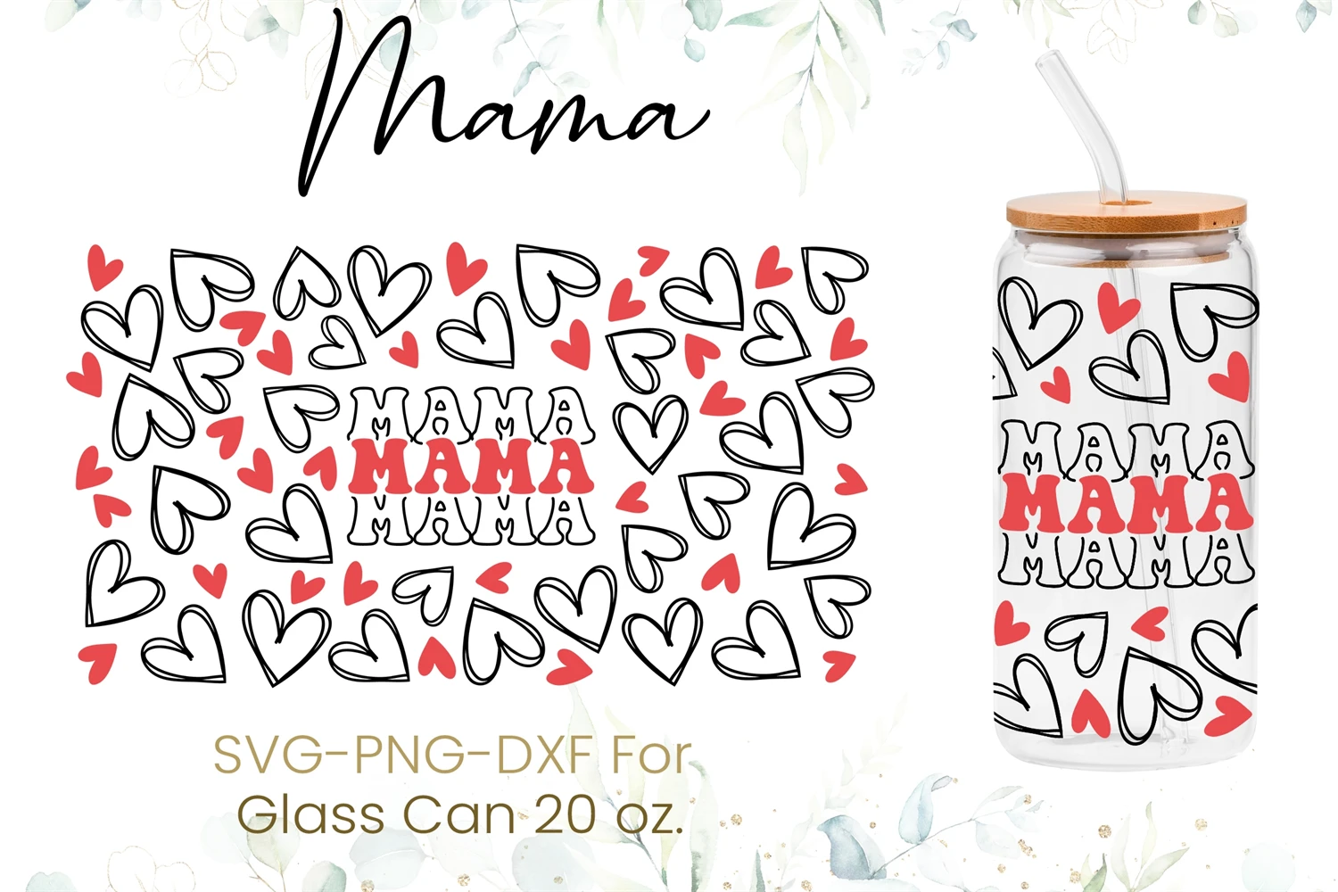 20oz Hearts Libbey Glass Can Svg, Hearts Svg,Mother Day Svg