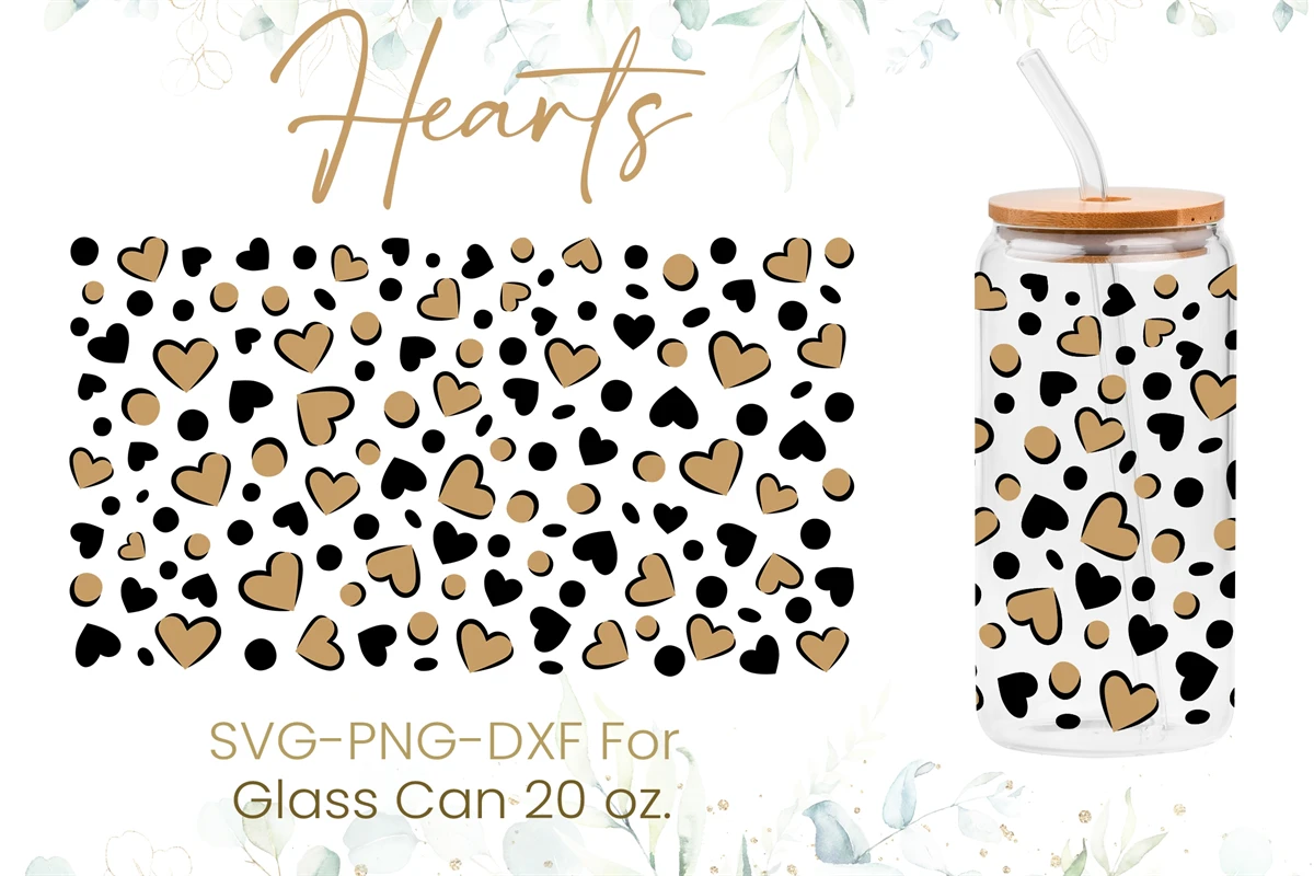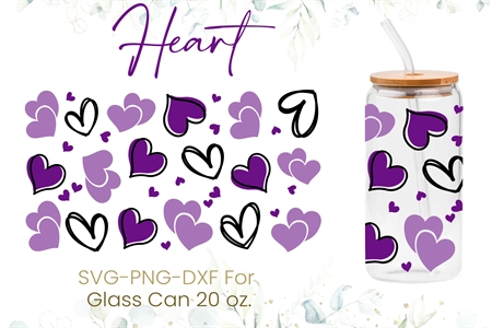 20oz Hearts Pattern Libbey Glass Can Svg, Love, Valentines