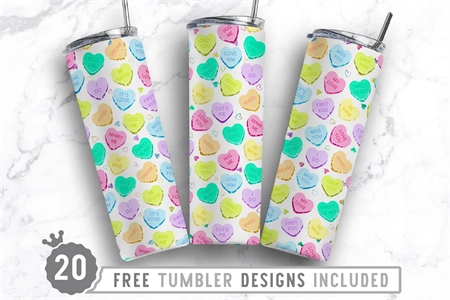 20oz Hearts Skinny Tumbler Sublimation Png, Straight Tapered