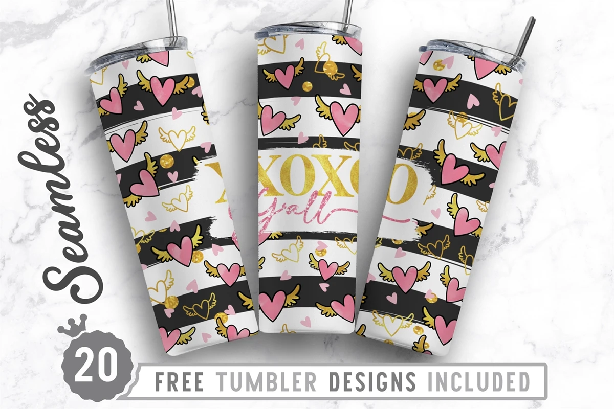 20oz Hearts Skinny Tumbler Sublimation Png, Straight Tapered