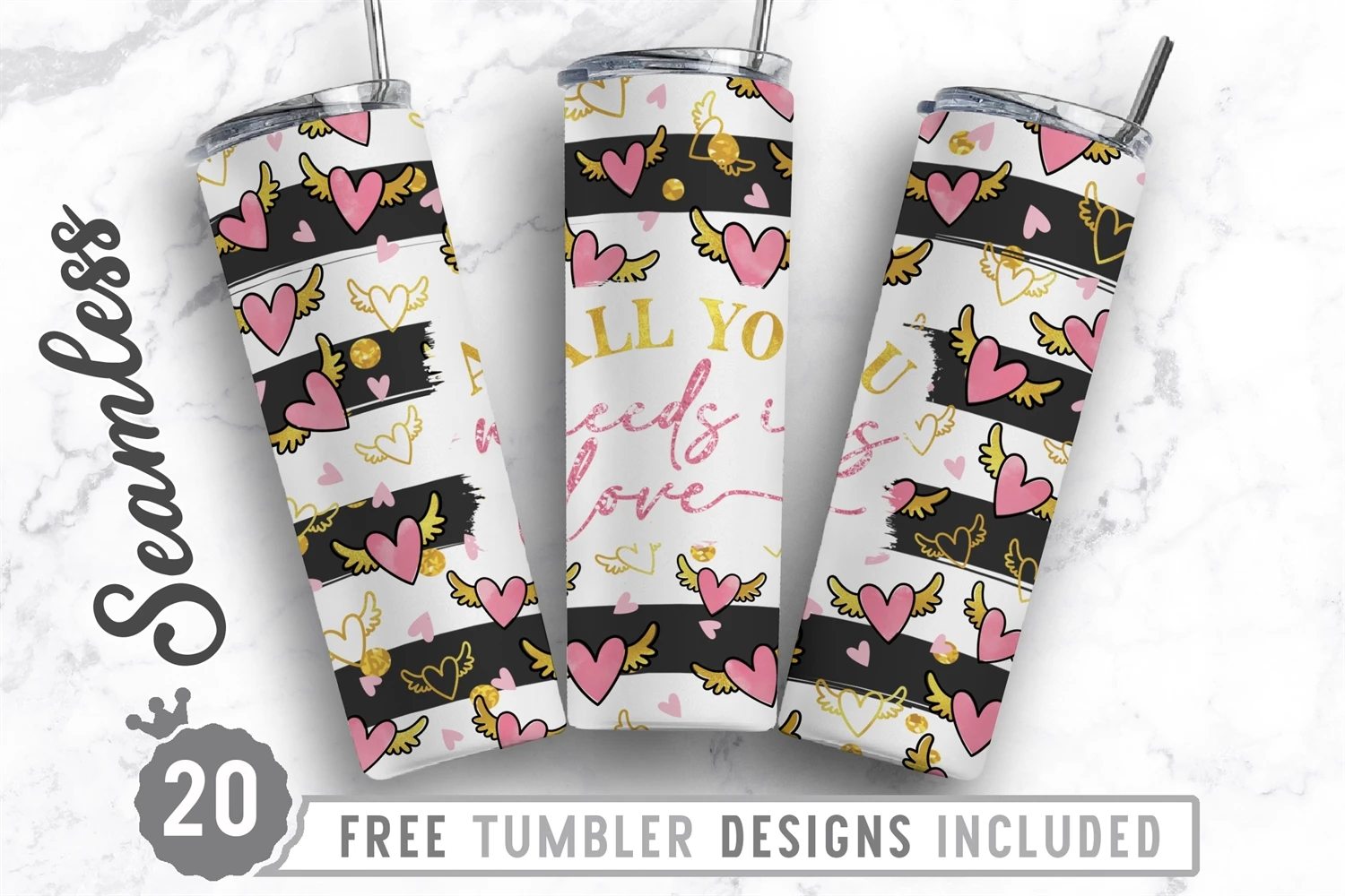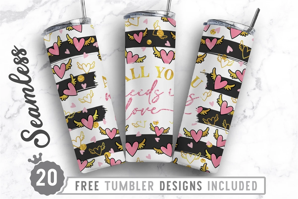 20oz Hearts Skinny Tumbler Sublimation Png, Straight Tapered