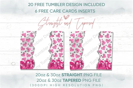 20oz Hearts Skinny Tumbler Sublimation Png,Straight Tapered