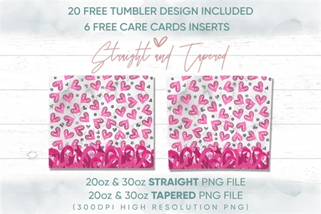20oz Hearts Skinny Tumbler Sublimation Png,Straight Tapered