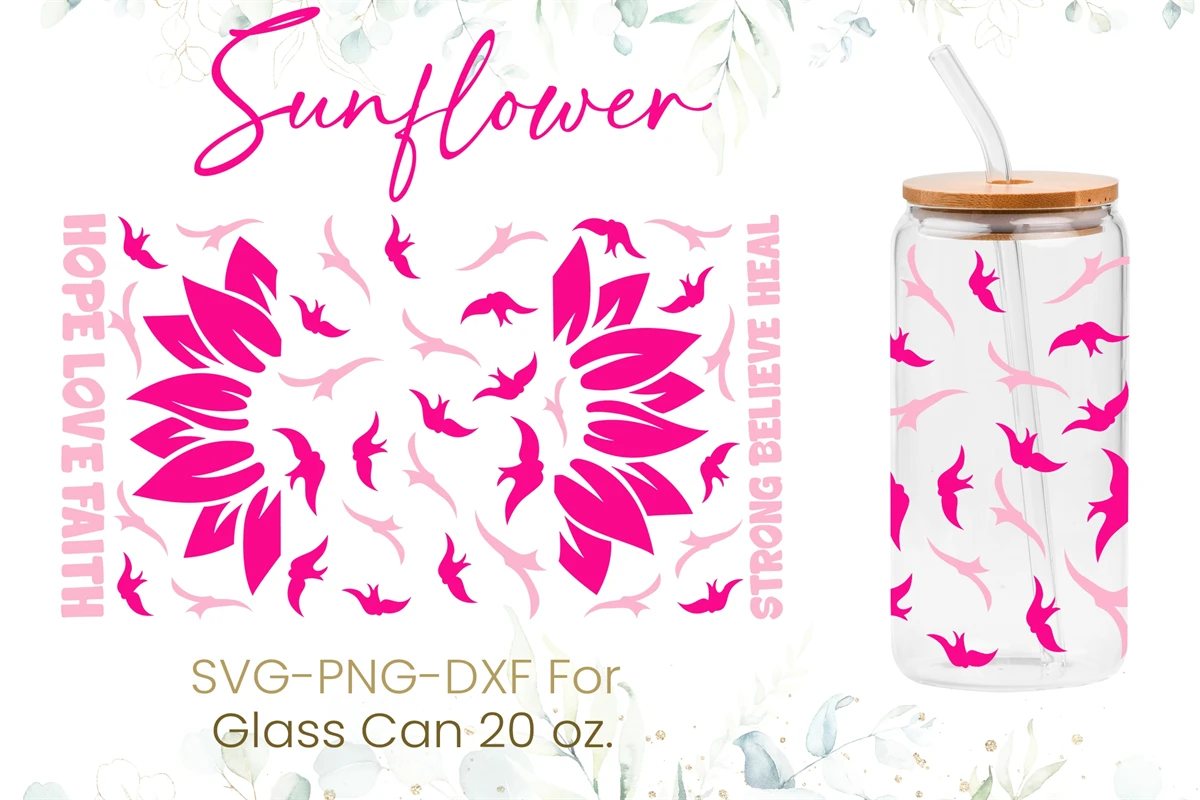20oz Hope Love Faith Libbey Glass Can Svg,Pink Ribbons Svg