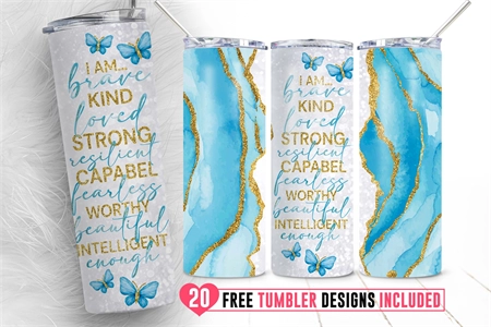 20oz I am Kind Strong Capable Skinny Tumbler Sublimation Png