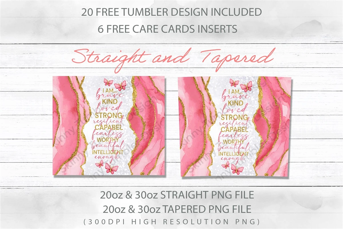 20oz I am Kind Strong Capable Skinny Tumbler Sublimation Png