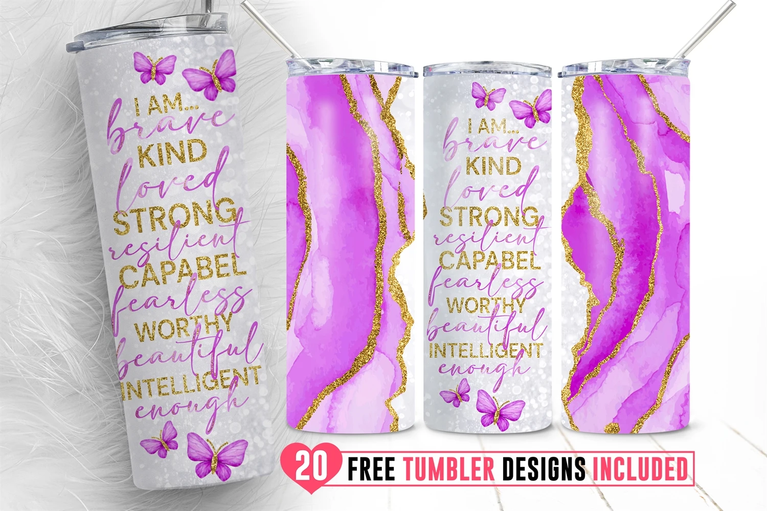20oz I am Kind Strong Capable Skinny Tumbler Sublimation Png