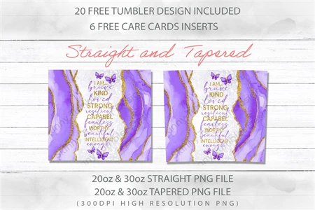20oz I am Kind Strong Capable Skinny Tumbler Sublimation Png