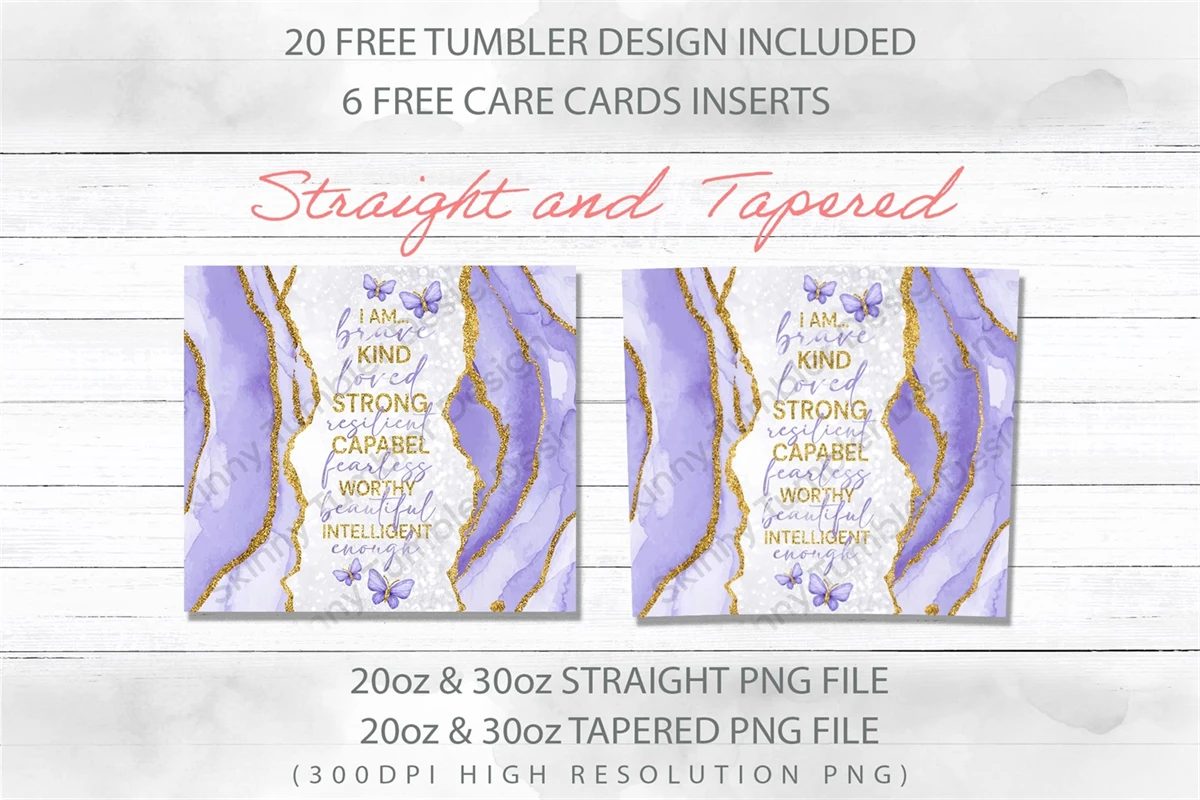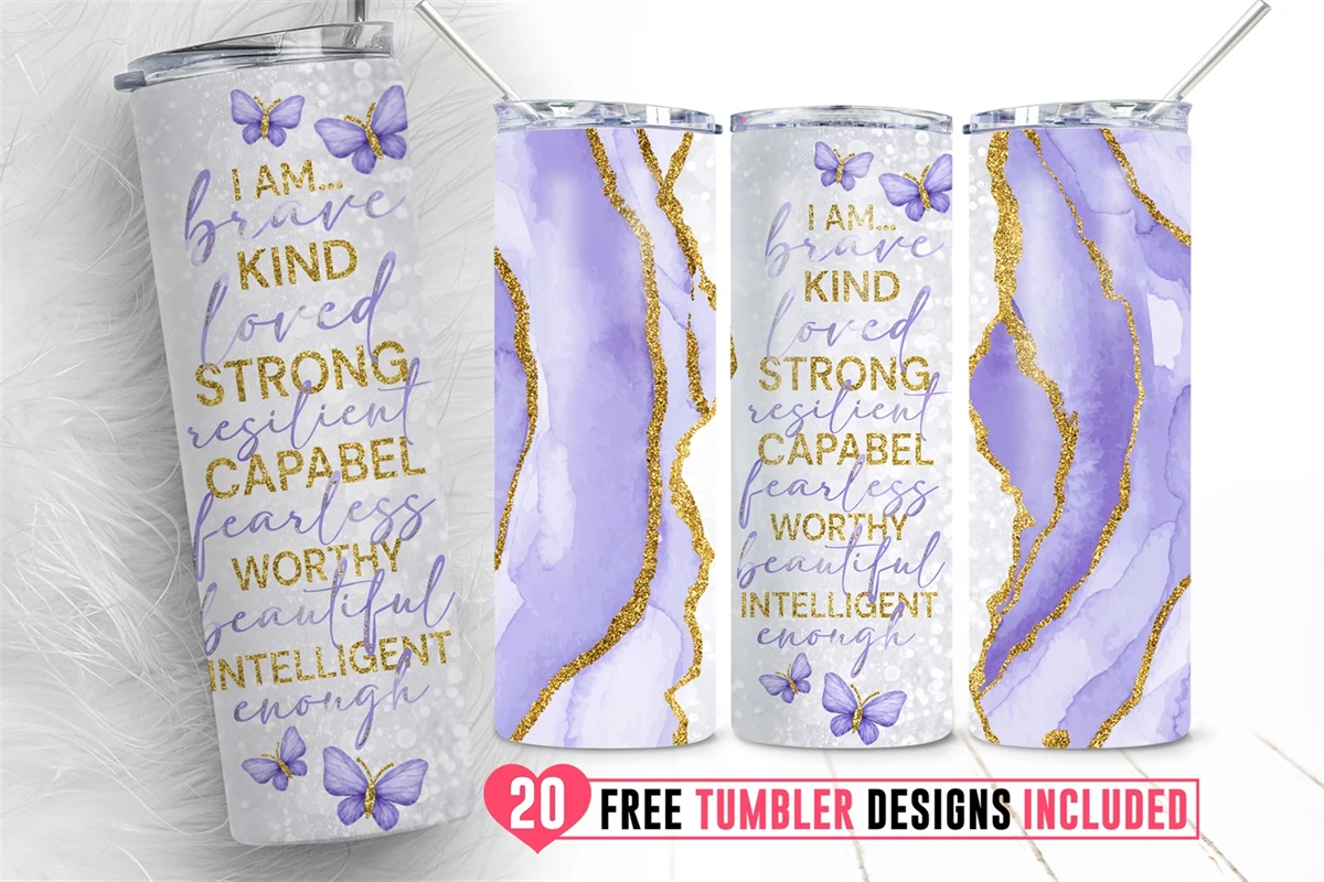 20oz I am Kind Strong Capable Skinny Tumbler Sublimation Png