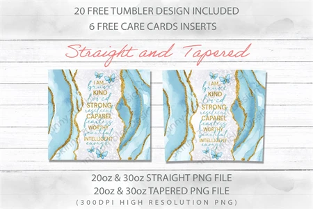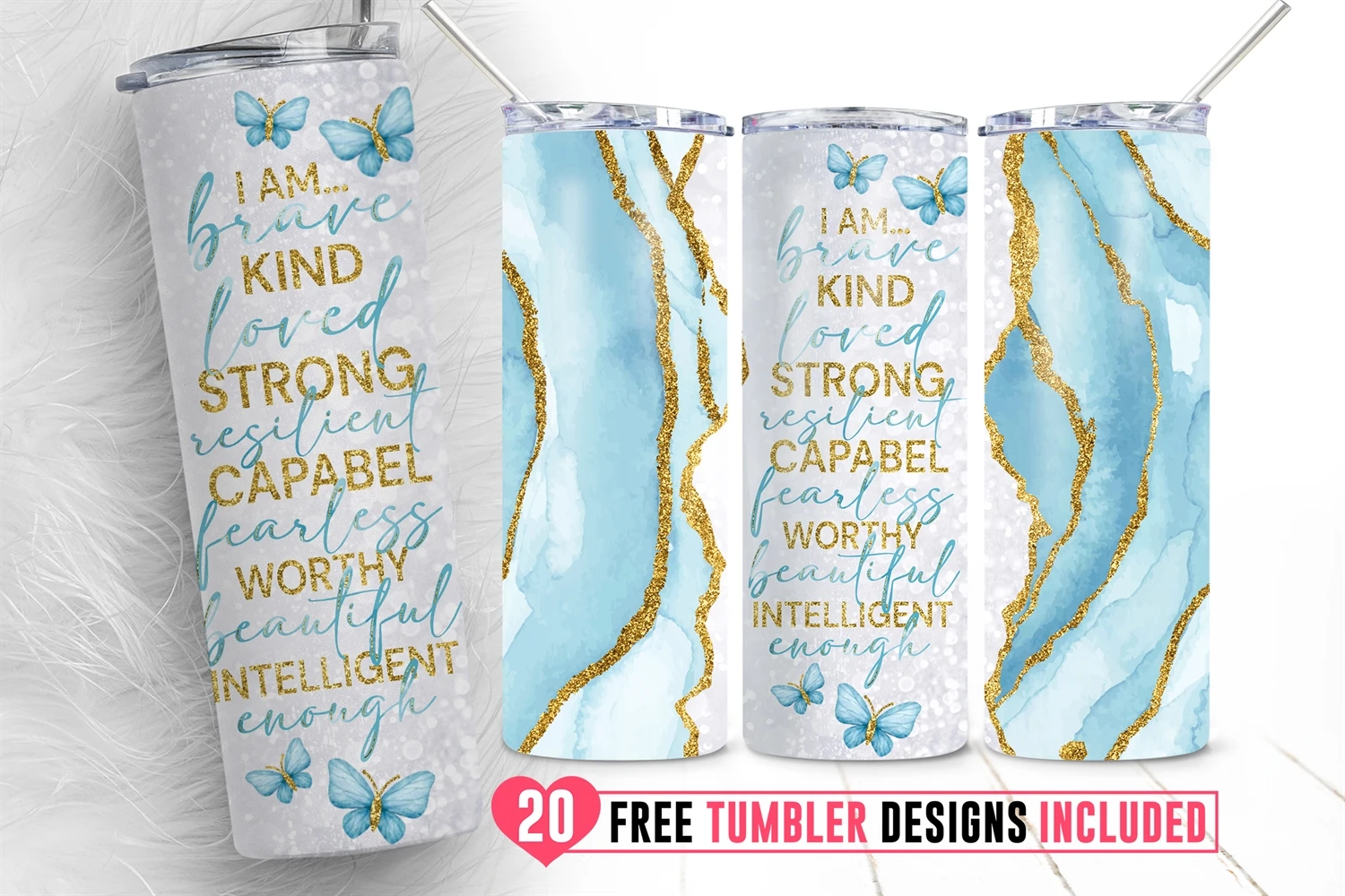 20oz I am Kind Strong Capable Skinny Tumbler Sublimation Png