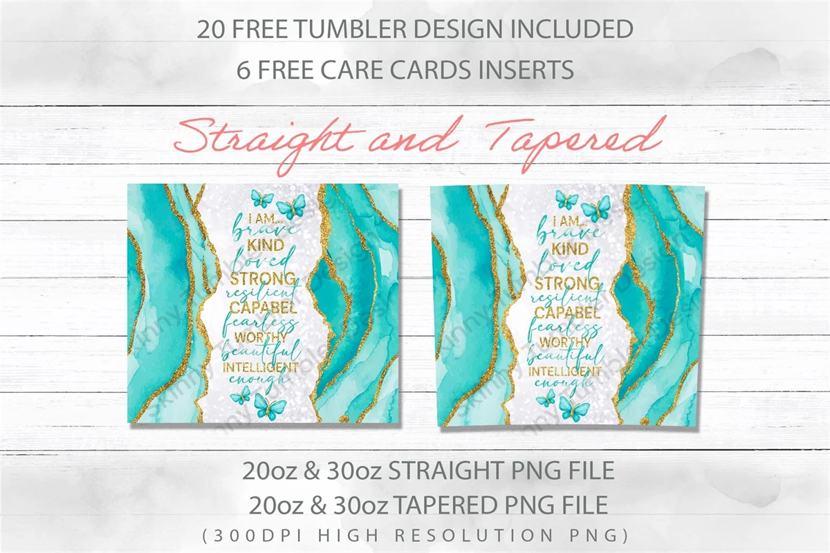 20oz I am Kind Strong Capable Skinny Tumbler Sublimation Png