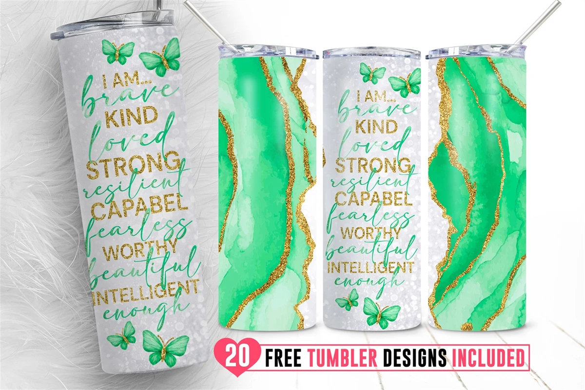 20oz I am Kind Strong Capable Skinny Tumbler Sublimation Png