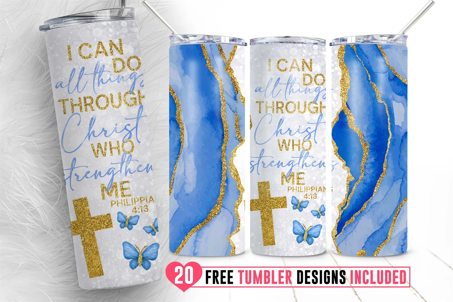 20oz I Can Do All Things Skinny Tumbler Png Bible Quotes