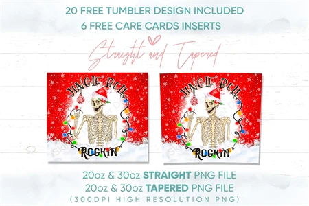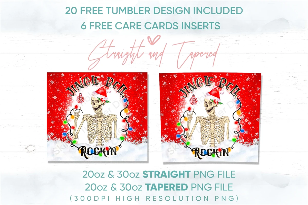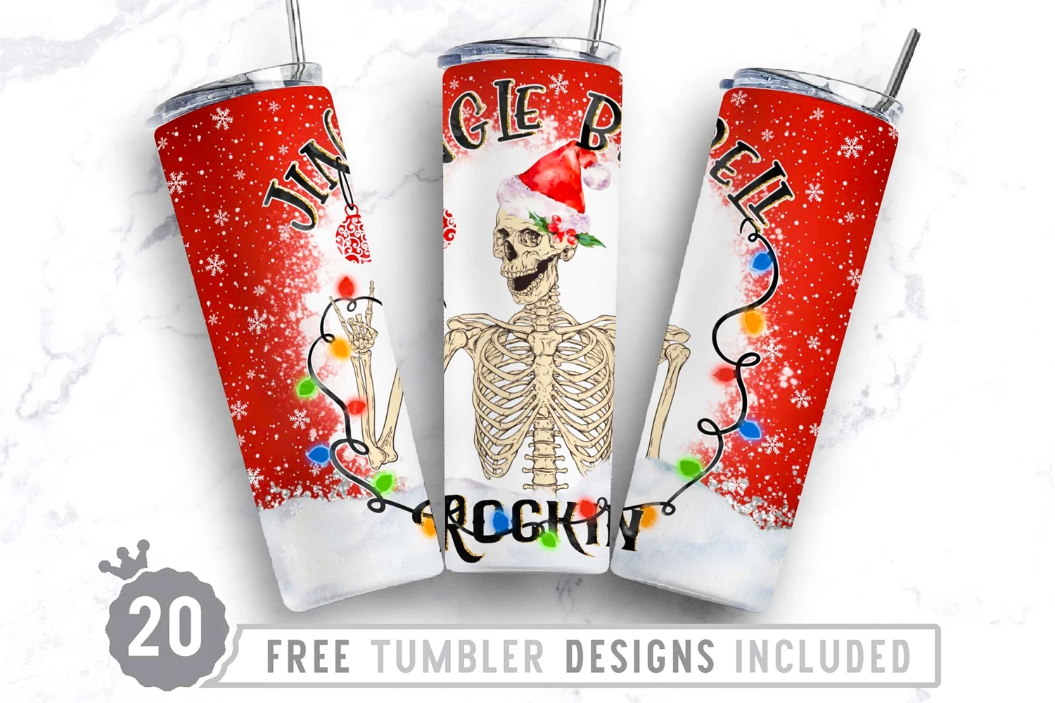 20oz Jingle Bell Rockin Skinny Tumbler Sublimation Png Skull