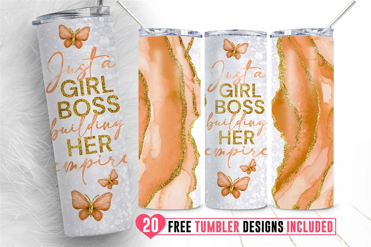20oz Just a Girl Boss Building Her Empire Skinny Tumbler Png