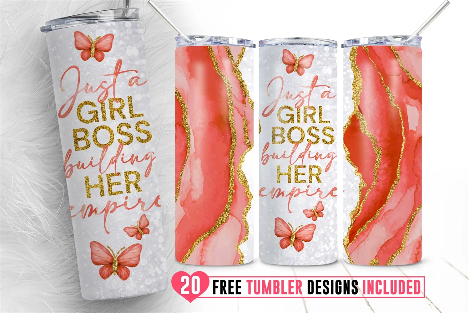 20oz Just a Girl Boss Building Her Empire Skinny Tumbler Png