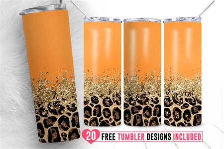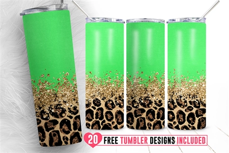 20oz Leopard Glitter Ombre Skinny Tumbler Animal Pattern