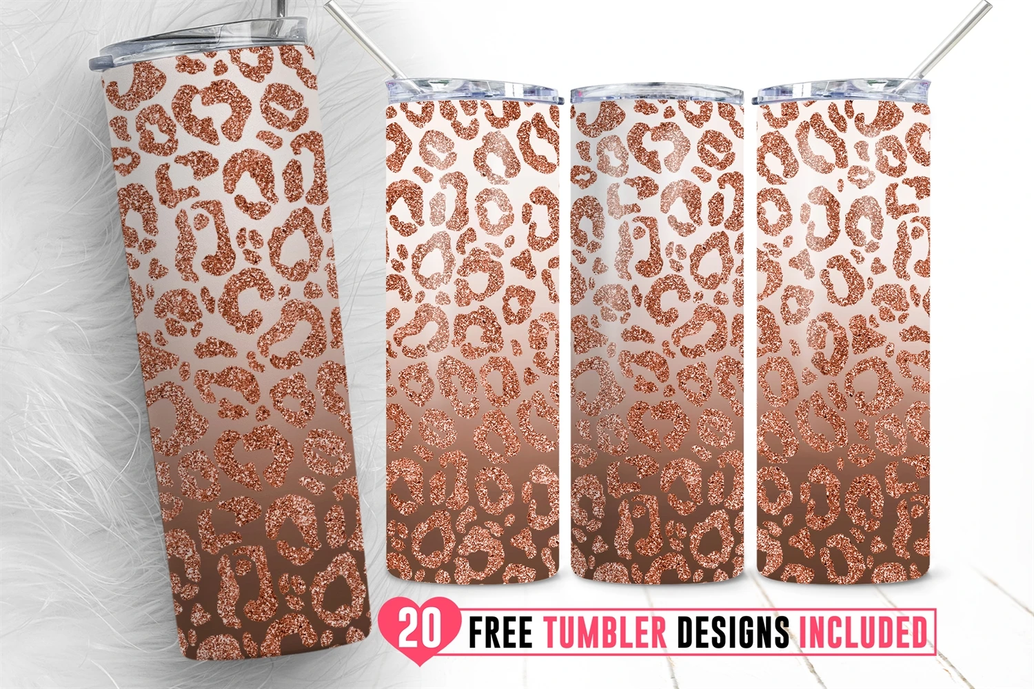 20oz Leopard Glitter Ombre Skinny Tumbler Animal Pattern