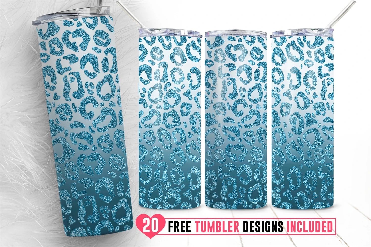 20oz Leopard Glitter Ombre Skinny Tumbler Animal Pattern