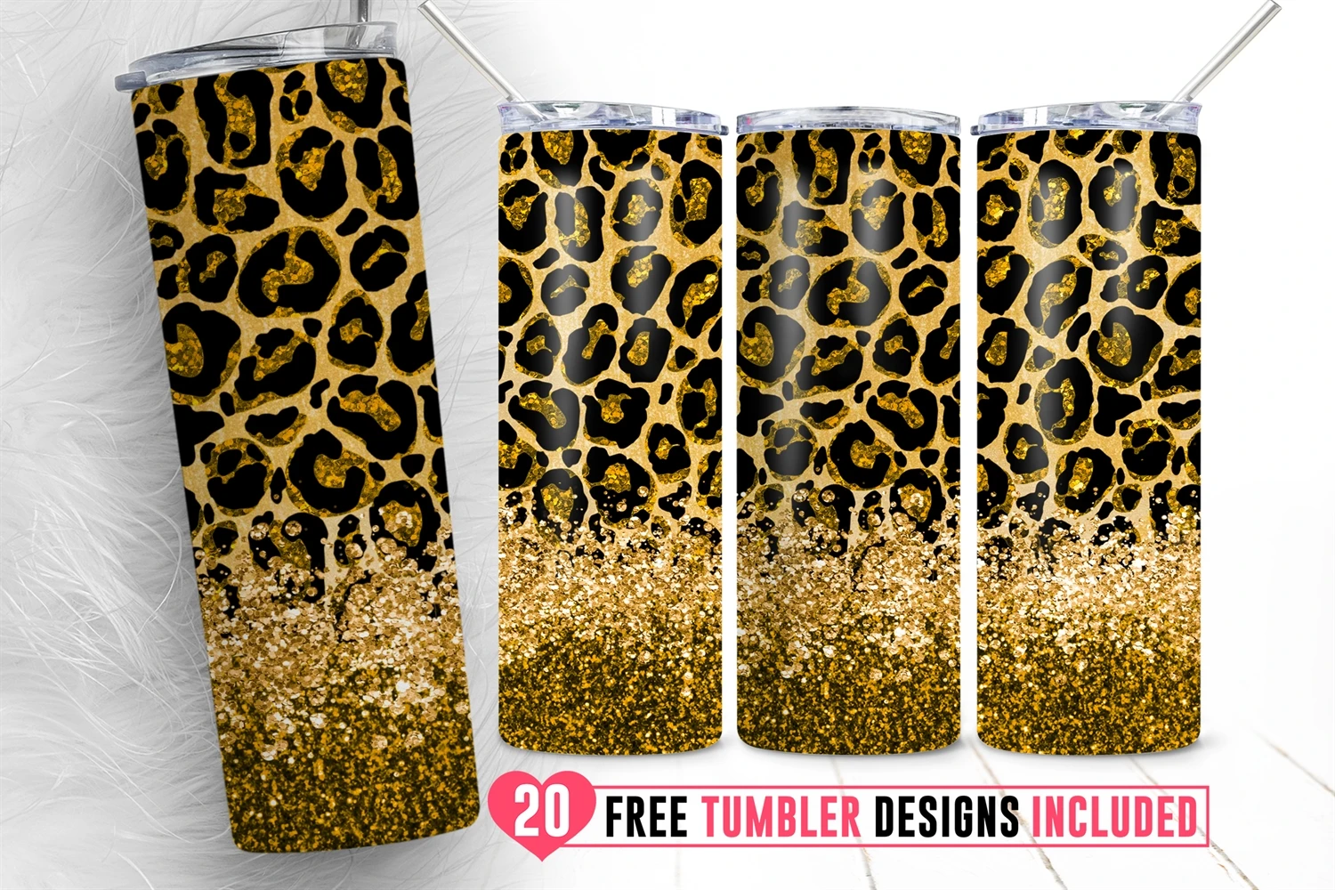 20oz Leopard Glitter Skinny Tumbler Animal Pattern Cheetah