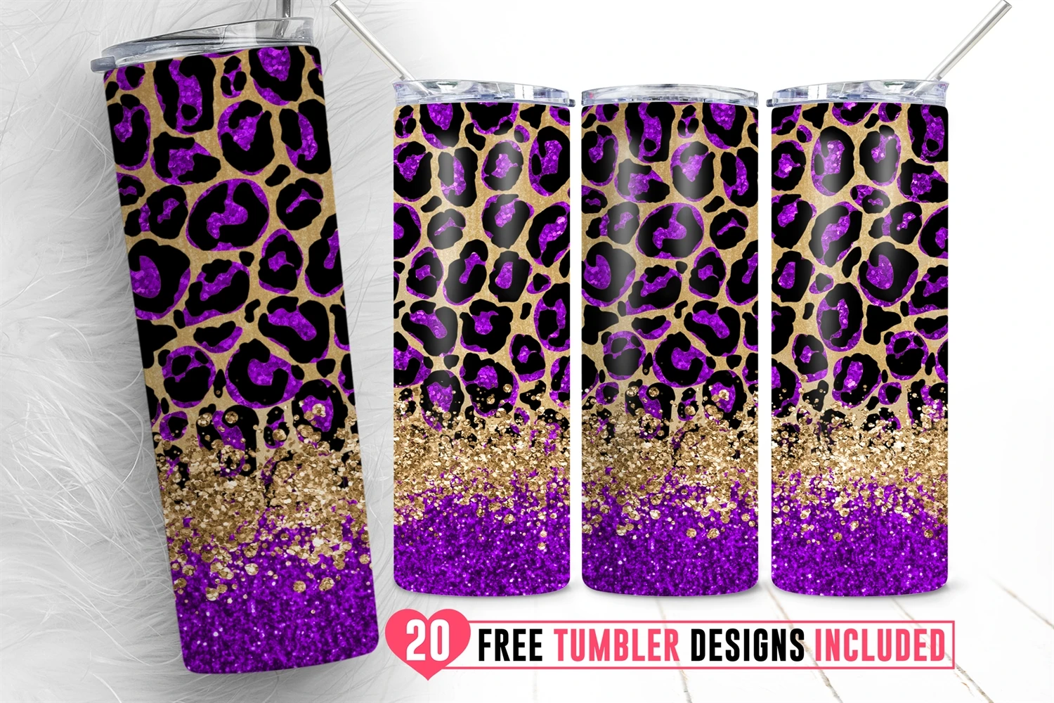 20oz Leopard Glitter Skinny Tumbler Animal Pattern Cheetah
