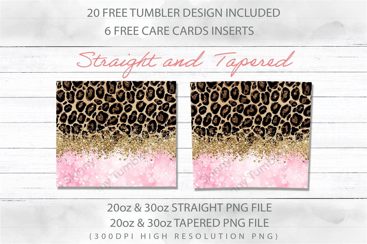 20oz Leopard Glitter Skinny Tumbler Animal Pattern Cheetah