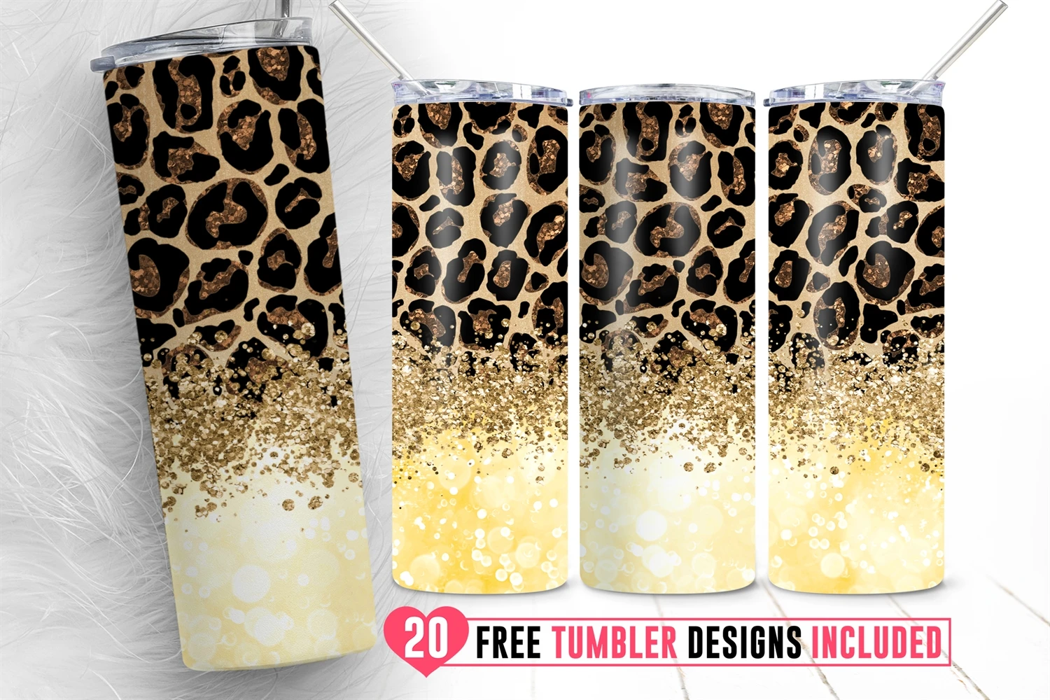 20oz Leopard Glitter Skinny Tumbler Animal Pattern Cheetah