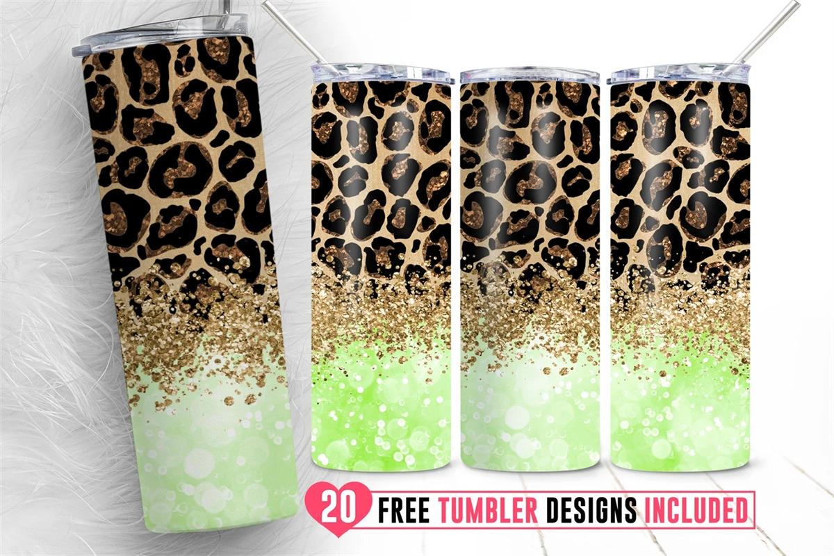 20oz Leopard Glitter Skinny Tumbler Animal Pattern Cheetah