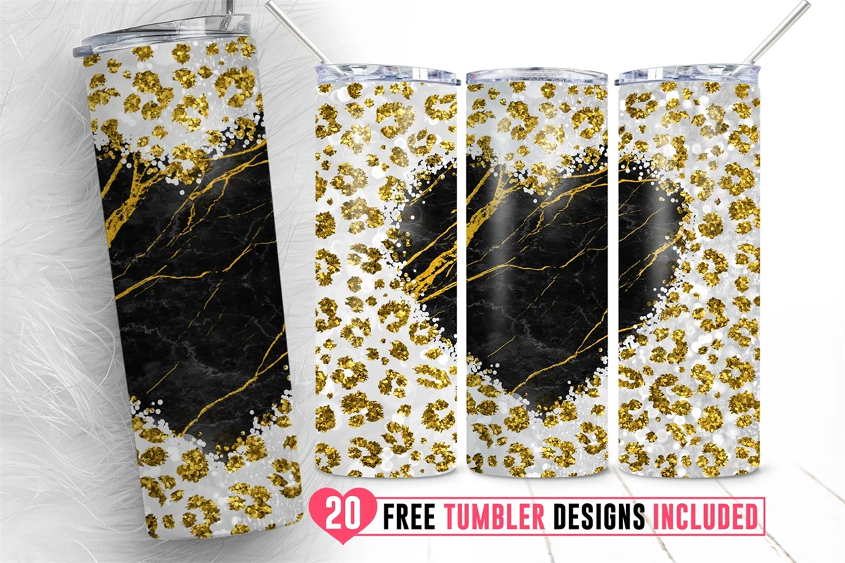 20oz Leopard Glitter Skinny Tumbler Sublimation Png, Agata