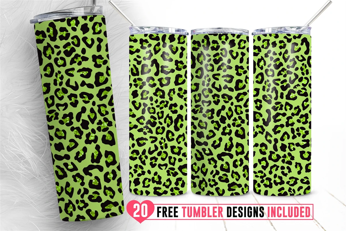 20oz Leopard Glitter Skinny Tumbler Sublimation Png, Agata