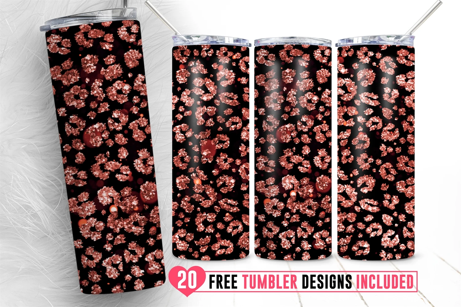 20oz Leopard Glitter Skinny Tumbler Sublimation Png, Agata