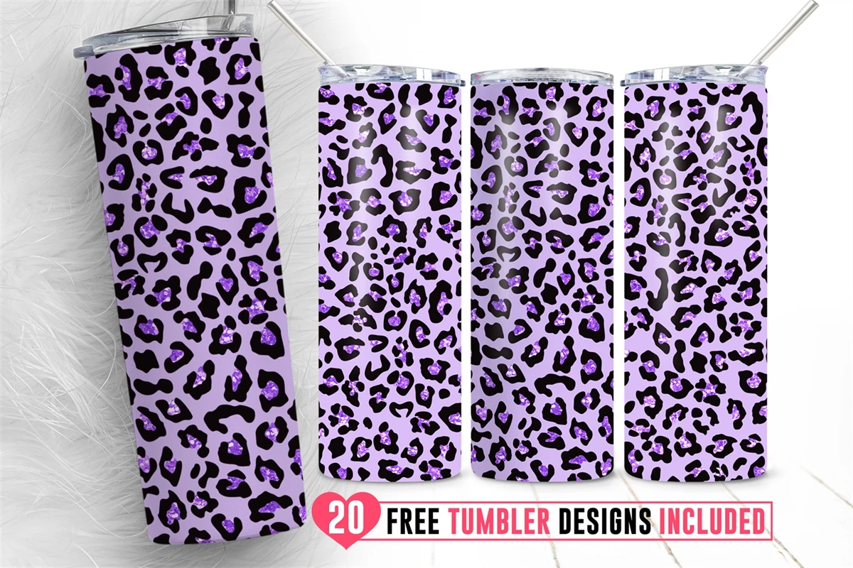 20oz Leopard Glitter Skinny Tumbler Sublimation Png, Cheetah