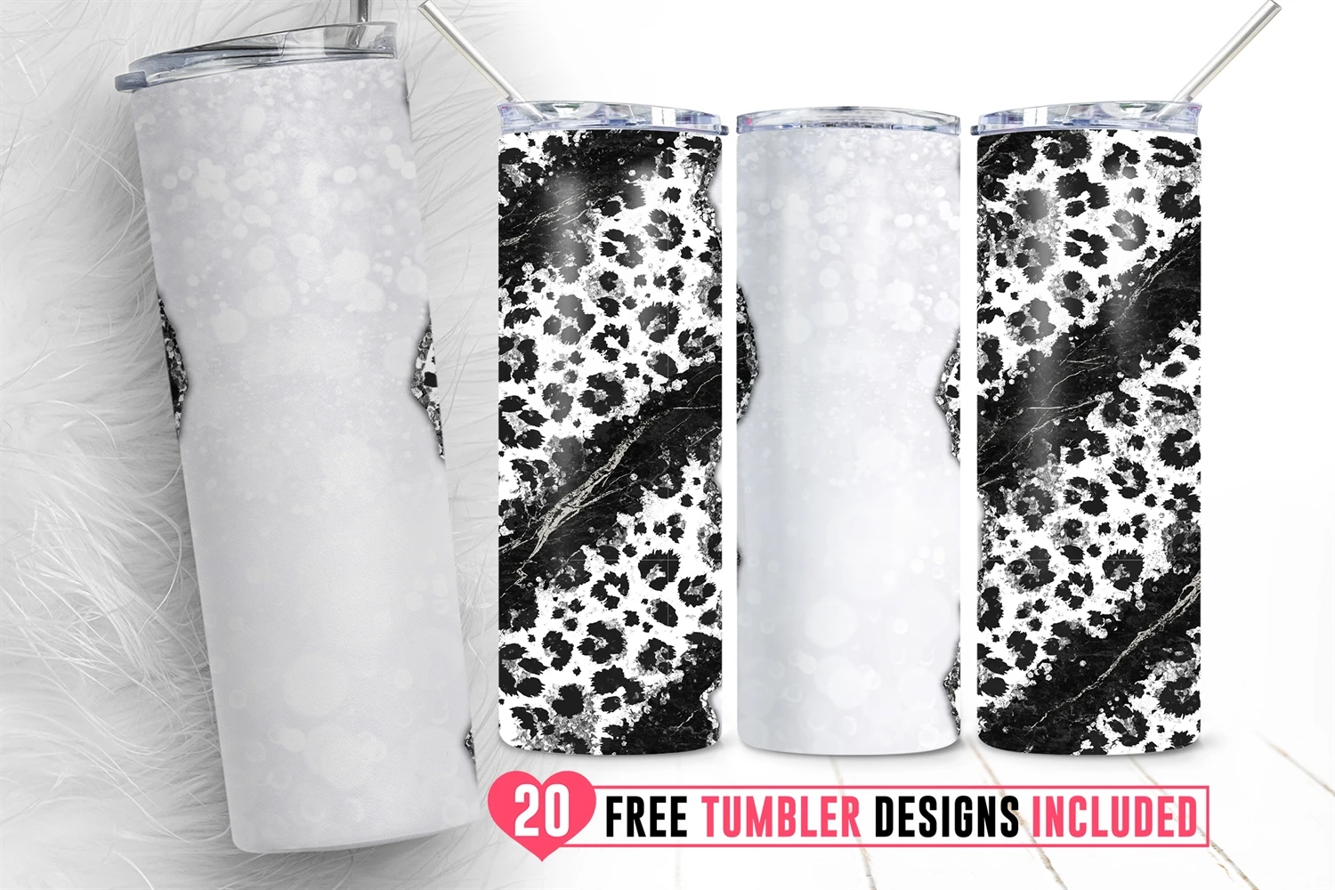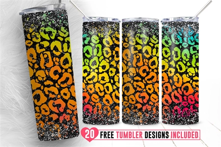 20oz Leopard Glitter Skinny Tumbler Sublimation Png, Glitter