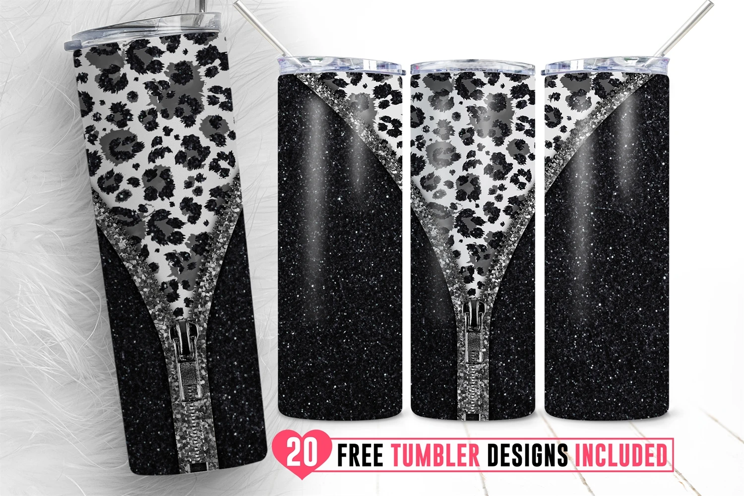 20oz Leopard Glitter Skinny Tumbler Sublimation Png, Glitter