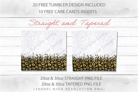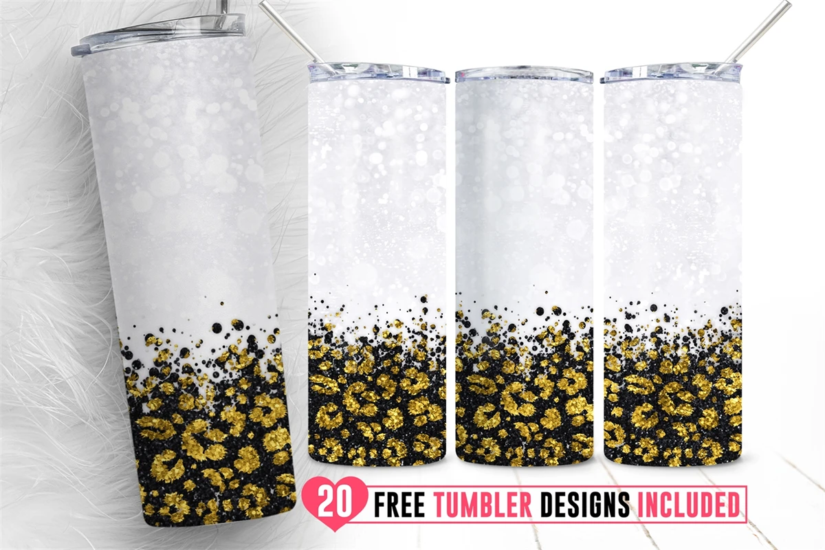 20oz Leopard Glitter Skinny Tumbler Sublimation Png, Gold
