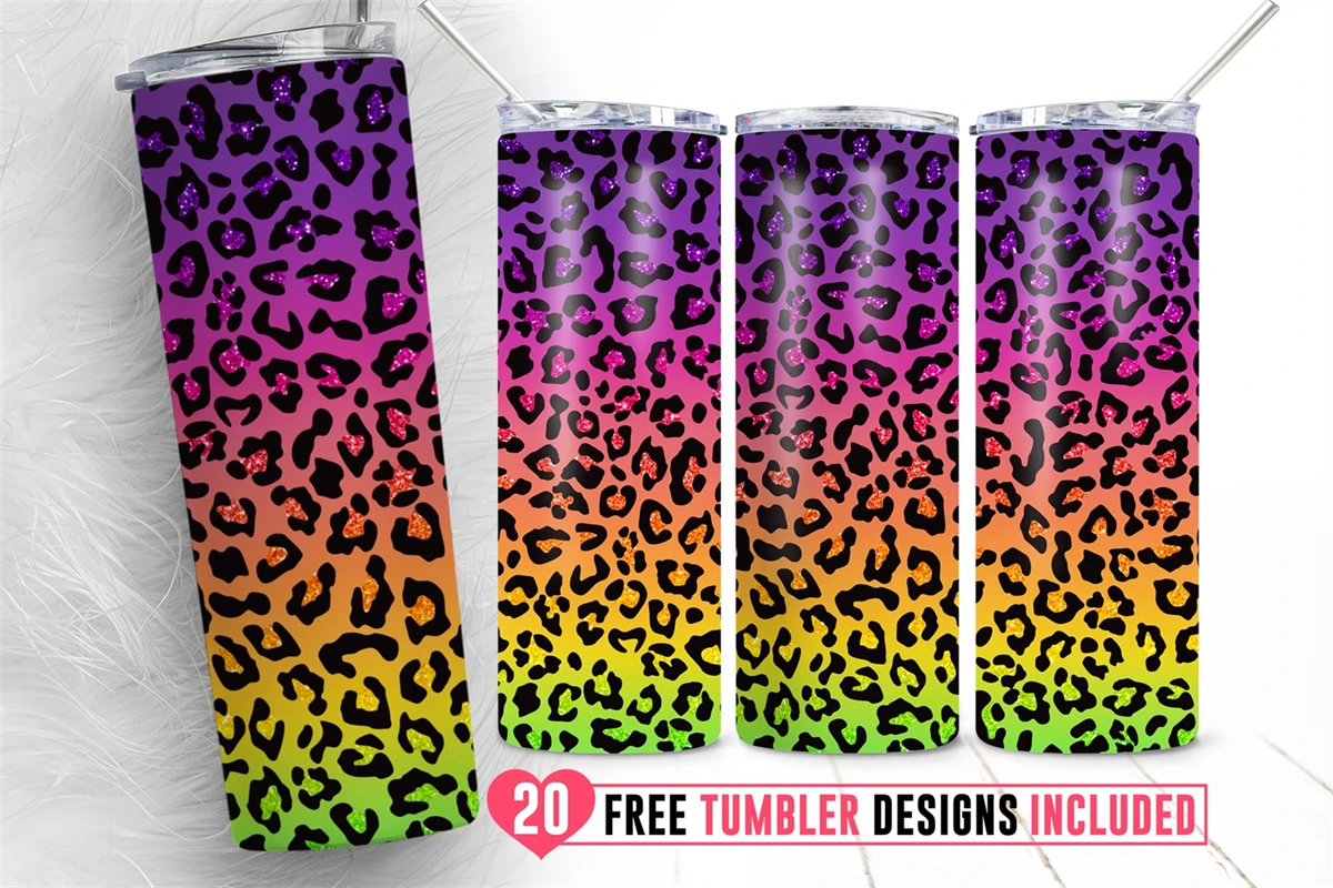 20oz Leopard Glitter Skinny Tumbler Sublimation Png, Print