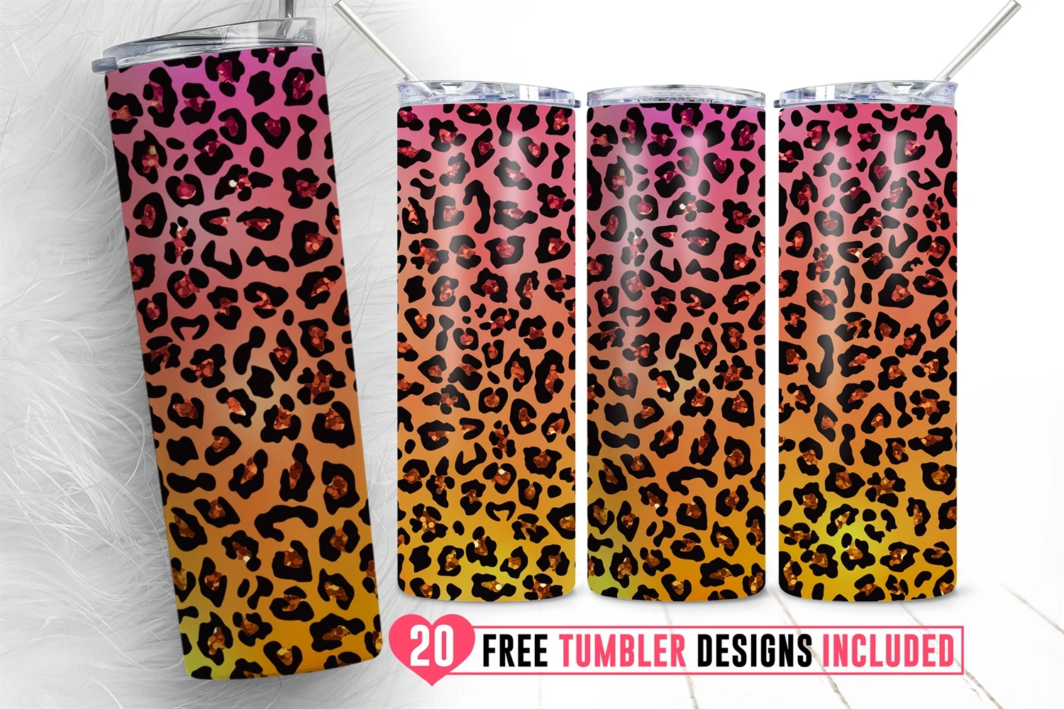 20oz Leopard Glitter Skinny Tumbler Sublimation Png, Print