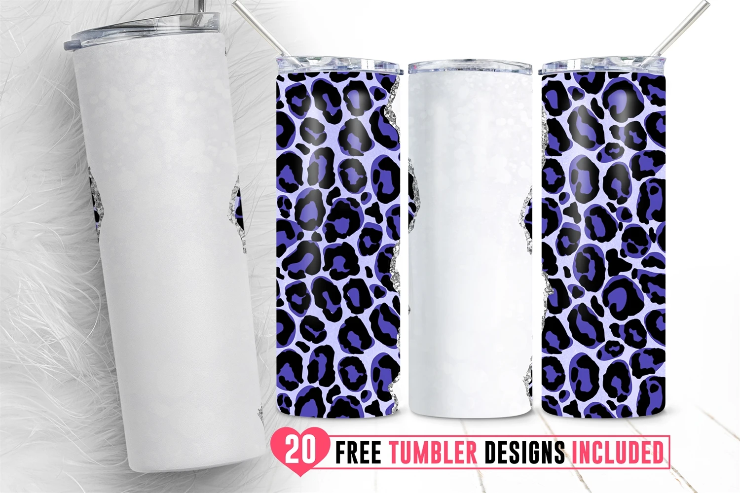 20oz Leopard Glitter Skinny Tumbler Sublimation Png, Rose