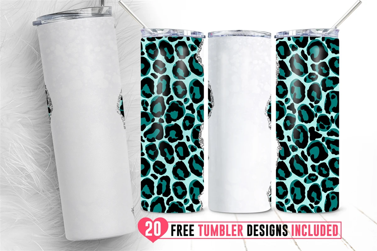 20oz Leopard Glitter Skinny Tumbler Sublimation Png, Rose