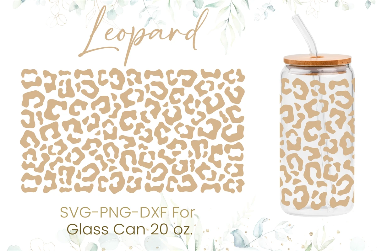 20oz Leopard Heart Libbey Glass Can Svg, Animal Pattern Svg