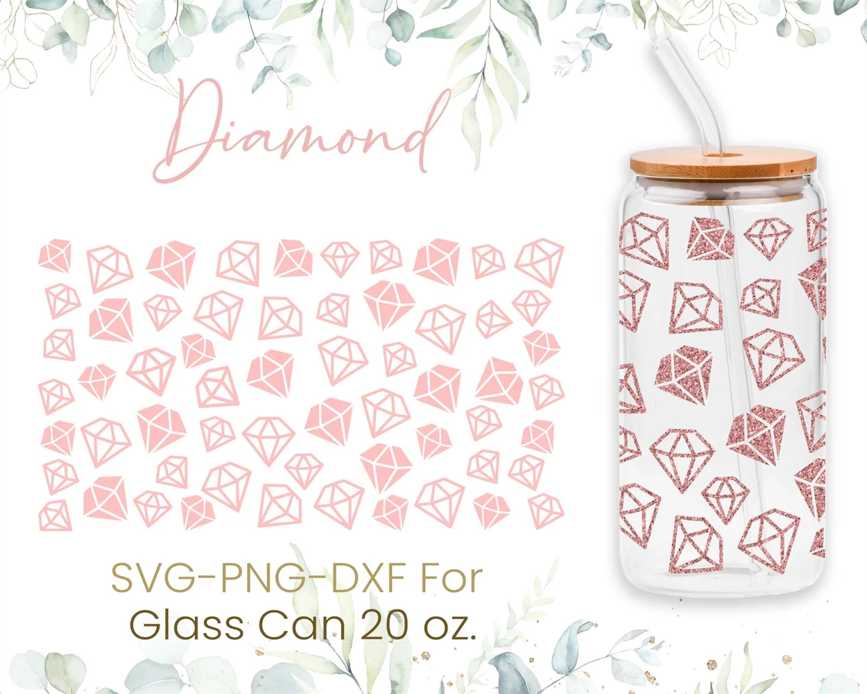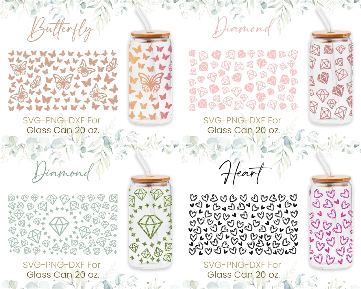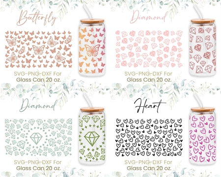 20oz Libbey Glass Can Svg Bundle, Diamond, Butterfly, Heart,