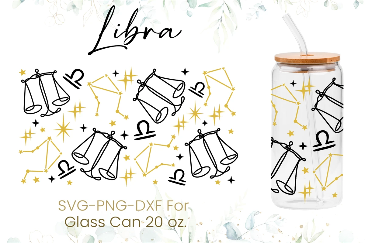 20oz Libra Libbey Glass Can Svg, Zodiac Sign Glass Can Wrap