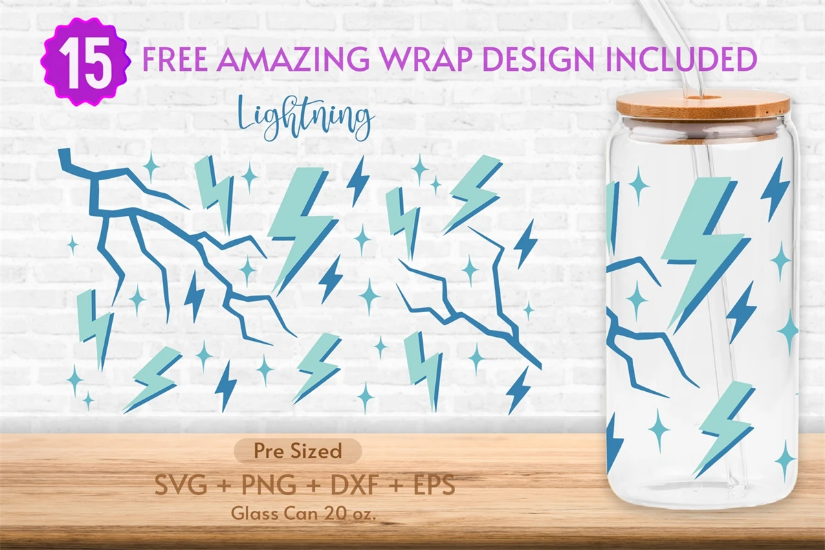 20oz Lightning Bolts Libbey Glass Can Svg,Glass Can Full Svg