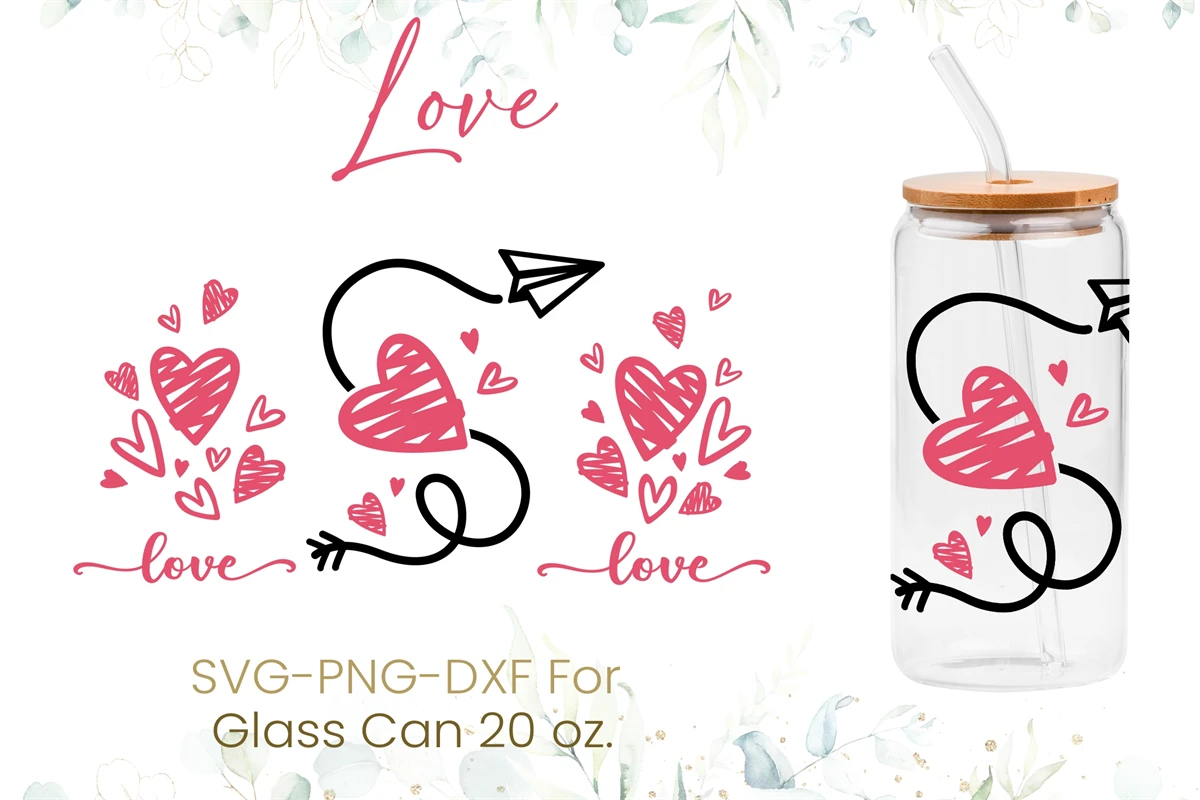 20oz Love Heart Libbey Glass Can Svg, Valentines Glass Can