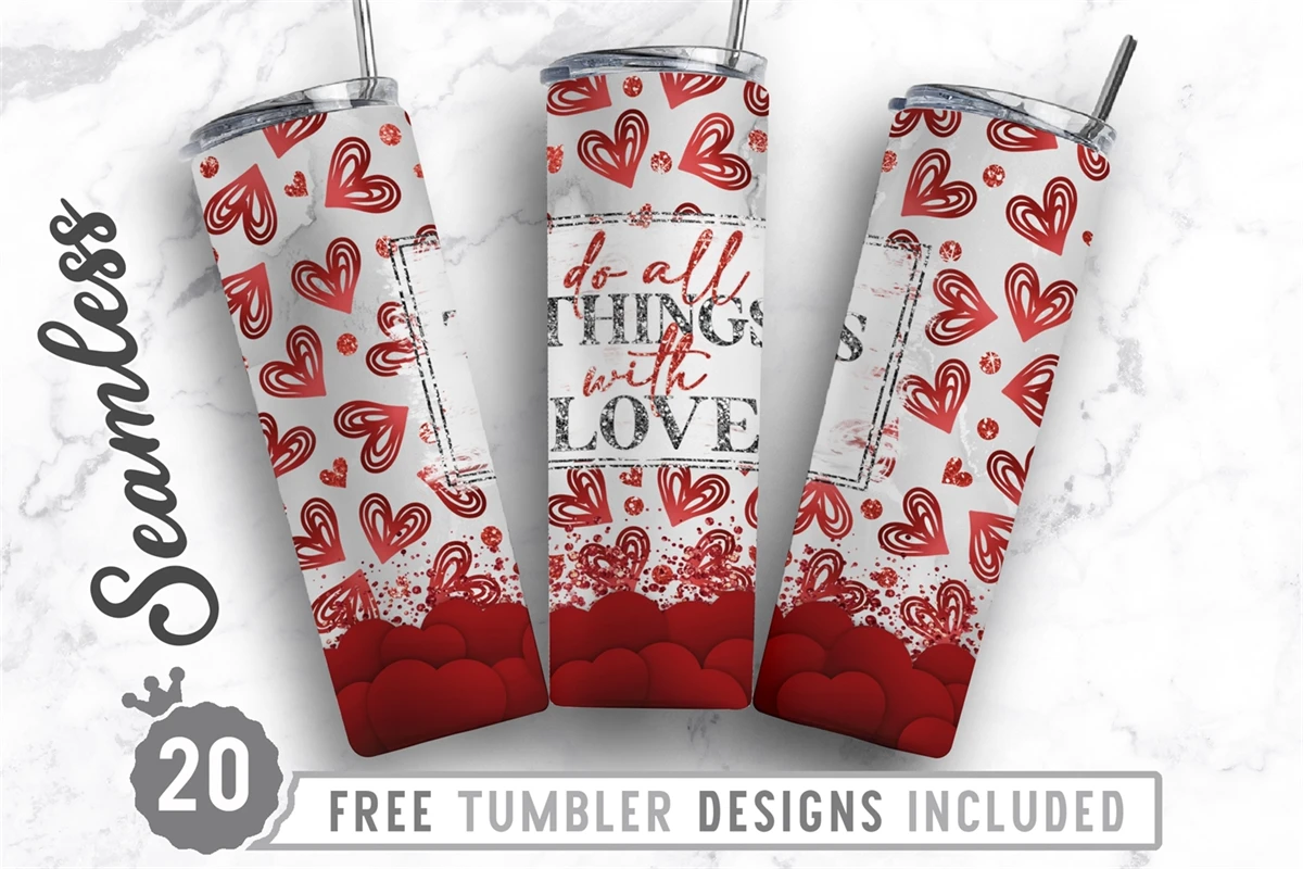 20oz Love Skinny Tumbler Sublimation Png, Straight Tapered