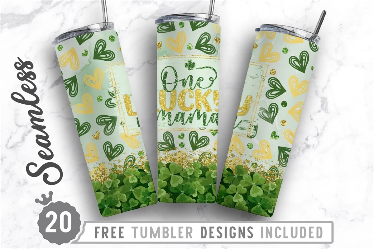 20oz Lucky Mama Skinny Tumbler Sublimation, Straight Tapered