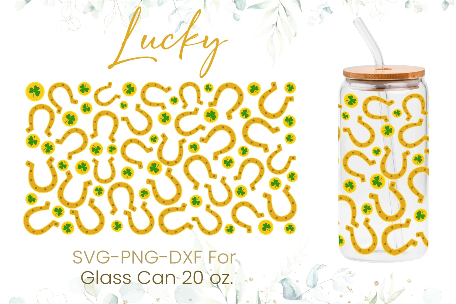 20oz Lucky Shamrock Libbey Glass Can Svg, St. Patrick's Day